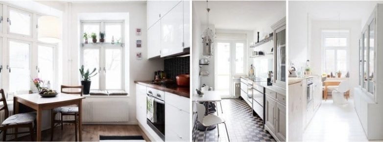 Вам нужно обдумать список необходимой бытовой техники и мебели, и по этому списку покупать, по возможности, предметы вместительные и не громоздкие – ведь по кухне еще и пройти надо. Дизайнеры, специализирующиеся на мебели для кухонь, знают много трюков, чтобы и мебель разместить, и хозяевам комфортно на маленькой кухне было.