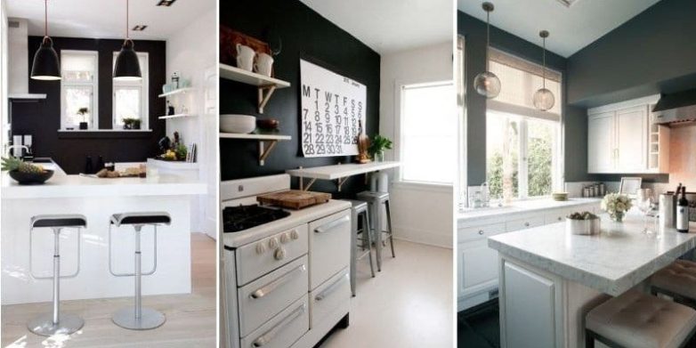 Если вы купили гарнитур с темными фасадами шкафчиков, то стены отделайте светлыми, пастельными тонами.