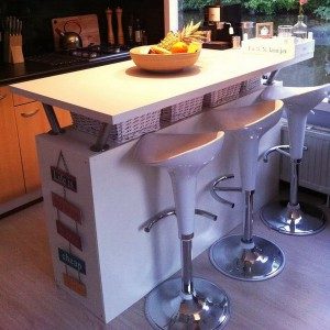 Есть кухонный островок без шкафа под столешницей? И его можно превратить в практичное приспособление, притом без ущерба для красоты. Прикрепите под столешницей или сбоку несколько кухонных аксессуаров: корзины для столовых приборов, полочки, или даже полноценное отделение для посуды. И удобно, и красиво!А может вообще приобрести кухонный остров, выполняющий функции барной стойки и буфета? Под столешницей можно разместить ящики для приборов, салфеток и прочего.