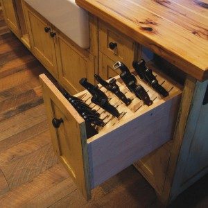 Магнитная доска для ножей — пожалуй, замечательное изобретение. Но что, если вам жутковато постоянно держать острые предметы на виду? Или у вас есть вездесущие дети? Если вы хотите спрятать ножи, но в то же время иметь к ним постоянный доступ — сделайте такой выдвижной модуль специально для ножей.Важно: ножи должны быть именно там, где вы ими постоянно пользуетесь. Идеальное решение — узкий зазор между плитой и тумбой.