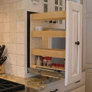 Часто в просторных кухнях для хранения мелочей используется буфет. Но не всегда это громоздкое сооружение оправдывает себя. Тем не менее, кухонная утварь, специи и сыпучие всегда должны быть под рукой. Что же делать?Есть отличное решение — «выдвижная кладовка». Она занимает места намного меньше, чем буфет, но в разы удобнее. Все необходимое будет в свободном доступе и на такой высоте, какая вам необходима.