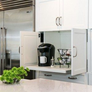 4. Шкафчик с выдвижной панелью для кофеварки и тостера.