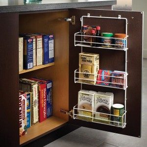 Мини-полочки, закрепленные на дверце шкафа — еще один способ использовать пространство по максимуму. Подойдет как для кухонных шкафчиков, так и для буфета либо кладовки — в зависимости от высоты и глубины.