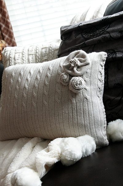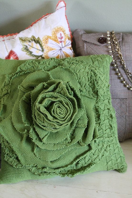 Есть и еще одна модная тенденция – изготовление подушек из старых свитеров, которые благодаря мягкости материала получаются очень милыми и уютными. Такие изделия можно создать как из вязаных кардиганов, так и из теплых трикотажных водолазок – в любом случае они прекрасно прослужат вам еще несколько лет, но уже в новом качестве.