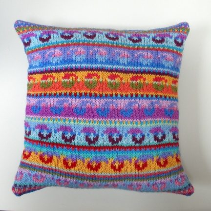 Как можно украсить получившуюся из свитера подушку, если рисунка на вязке нет?
