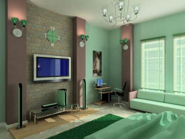 Цвет в интерьере квартиры — влияние на человекаДля благоприятного воздействия на психическое самочувствие человека, а также на уют и благополучие в доме, цвет в интерьере квартиры играет первостепенную роль. Зеленый цвет и его оттенки больше всего подходят для жилых помещений. Они успокаивают, снимают усталость и напряжение, не спроста зеленые оттенки отвечают законам обустройства спальни по фен-шуй. Чтобы улучшить восприятие, необходимо добавить аксессуары желтого или синего цветов.Преобладание красного цвета способствует повышению агрессии и раздражительности. К тому же этот цвет способствует зрительному уменьшению пространства. Красный цвет лучше использовать для декорирования столовой, так как он способствует пищеварению и возбуждает аппетит.