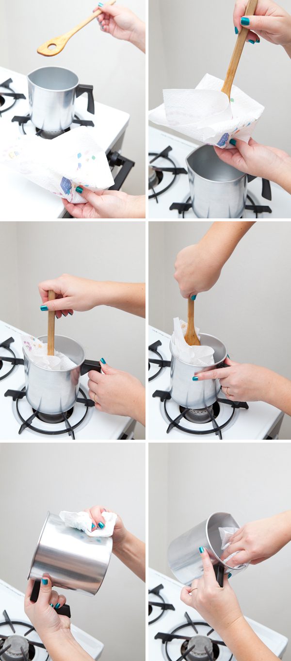 Свеча готова! Лайфхак: как очистить посуду от воска? Если охлажденный воск остался на дне кастрюли или ковша, поставьте его на огонь на 10 секунд, а затем тщательно протрите дно бумажным полотенцем.