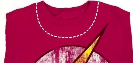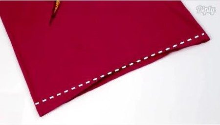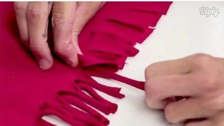 Надрезаем подол равномерной бахромой. Выворачиваем футболку наизнанку.