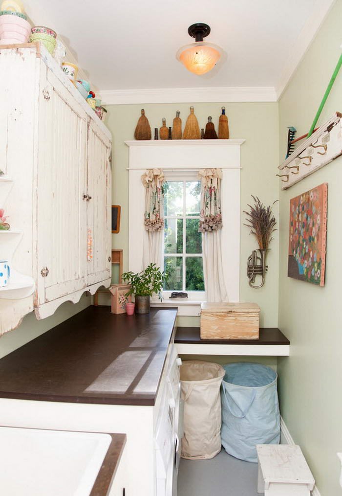 Такую роскошь, как отдельная комната для хозяйственного инвентаря, пусть даже небольшая, традиционно могут позволить себе владельцы домов или крупногабаритных квартир. А чтобы этот вариант не казался слишком уж нерациональным с точки зрения планировки, отдельную комнату можно наделить дополнительными функциями. Во-первых, разместить в ней все необходимые полочки, подставки и крючки для хранения бытового инвентаря, а, во-вторых, приспособить под гладильную — установите гладильную доску, подготовьте место для корзины с чистым бельем и столик или тумбочку для поглаженного белья. В итоге такая домашняя работа, как глажка будет проходить в максимально комфортных условиях.