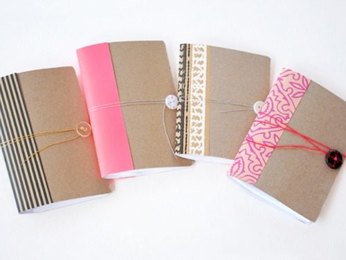 Многие по-прежнему любят носить с собой записные книжки. Сделайте такие книжечки легко самим, использовав для обложки коробку из-под мюсли (или другие картонные коробки) и красивую бумагу. На обложку наклейте полоски из цветной бумаги, пришейте пуговицу и прикрепите резинку, чтобы книжка закрывалась. Такие книжки можно оформить в разном стиле и подарить друзьям. Вам понадобится: коробка из-под мюсли (из нее выйдет 2 обложки), бумага для принтера формата А4 для внутренних страниц книжки, цветная бумага с рисунками для декора, линейка, карандаш, ножницы, клей, пуговицы, нитки мулине. Творите!