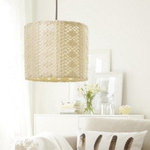 Ажурный абажур на подвесной светильник или настольную лампу — светлый джемпер (если желательно побольше света), приглушенных тонов (для интимного освещения) или яркий свитер (для богемного стиля или детской комнаты).
