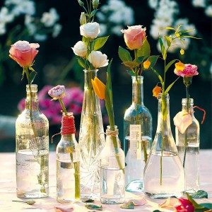 Самый очевидный способ — использовать бутылки как вазы. А если собрать несколько рядом — это еще и модно!