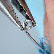 Прочно скрепите в пучок концы проволоки на вершине шатра. Кусачками срежьте длинные концы проволоки. Нижние концы проволоки скрутите плоскогубцами по спирали в маленькую баранку. Выгните шатер на лицевую сторону.