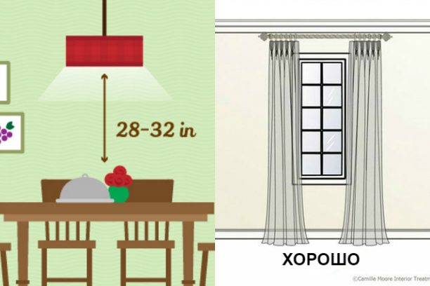Если хотите повесить лампу над обеденным столом, не вешайте ее слишком высоко. Расстояние между ней и столешницей должно быть в пределах 80-90 см.ШТОРЫ
