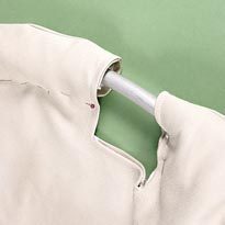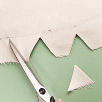 Стачайте обе детали чехла на расстоянии 4 см от края. Оставьте в нижней части отверстие такого размера, чтобы в него вошел обруч-каркас. Надсеките ножницами припуск 4 см, сделав край зубчатым. Выверните чехол кресла и отутюжьте его.