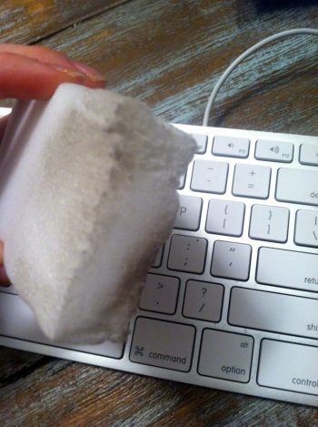 Губка поможет оттереть даже очень грязную клавиатуру.