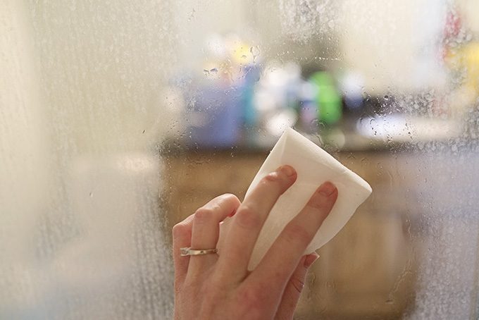 Кроме того, что губка уберет все жирные разводы и пыль с зеркал, после губки зеркала не будут запотевать.
