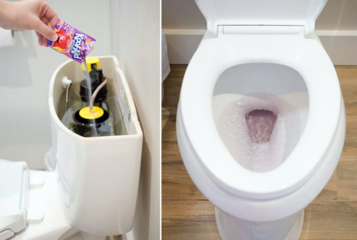Эффективно очистить унитаз от налета и загрязнений поможет пакетик любого растворимого напитка. Просто засыпьте немного сухого порошка в бачок и на стенки унитаза, оставьте на 15-20 минут, а после тщательно потрите ершиком и слейте воду. После такой чистки, унитаз засияет чистотой, а в воздухе будет витать приятный сладковатый аромат.
