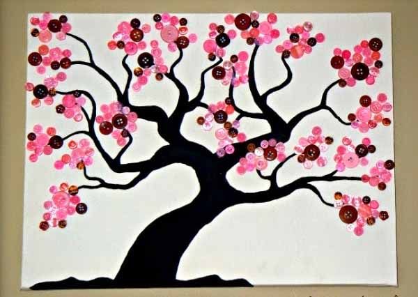 Простое в исполнении, но очаровательное по результату, «цветущее» дерево из пуговиц.