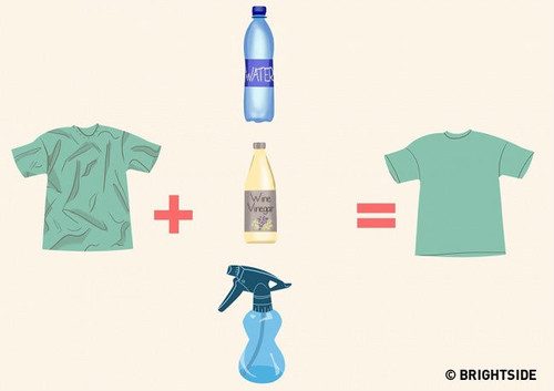 Смешайте белый уксус с водой 1:3, и разбрызгайте на мятую одежду из пульверизатора. Дайте высохнуть.