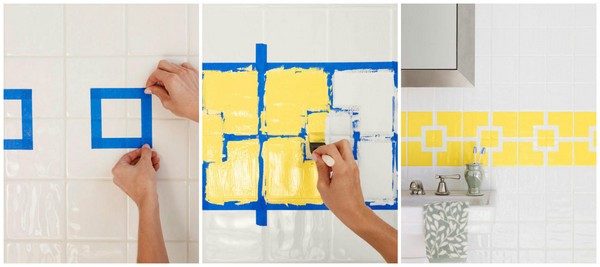 Но если креативность превалирует над перфекционизмом, можно заняться творчеством, покрасив кафель в несколько цветов. При этом могут быть использованы трафареты и шаблоны. Краска позволит превратить старую скучную облицовку в яркое панно.