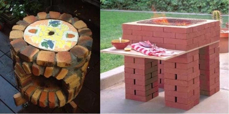 Для создания мангала можно использовать обычный и даже битый красный кирпич.