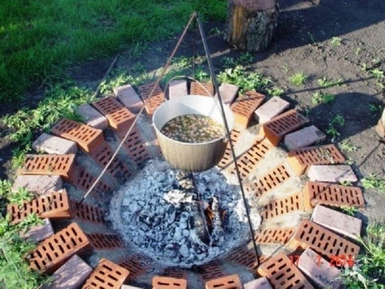 Место для костра в саду легко облагородить с помощью кирпичей!