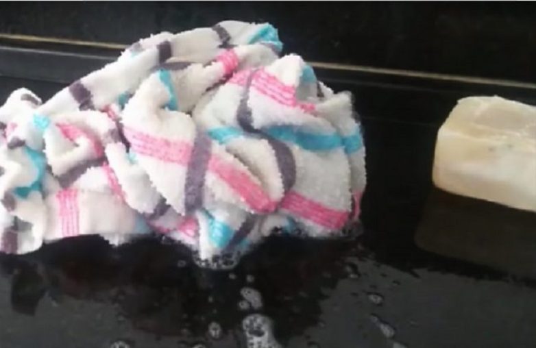 Чтобы твое полотенце снова приобрело надлежащий вид и было как новенькое, возьми обычное стиральное мыло и полиэтиленовый пакет.