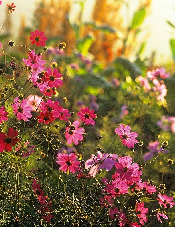 Хорошо иметь несколько цветочных кашпо, которыми всегда можно украсить участок, поставив их на землю, ступени дома или у дверей. В этом случае подойдут космеи, но сорта должны быть низкорослыми. Комбинируйте космеи с флоксами или остеоспермумом.