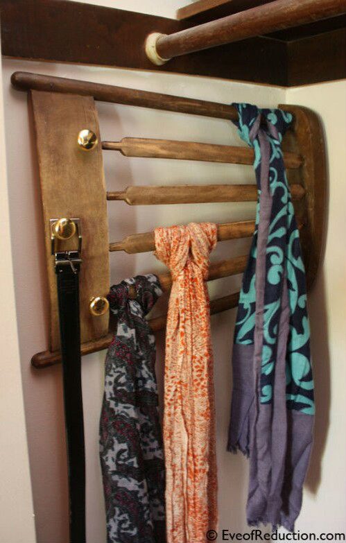 Сиденье из перетянутого стула, а спинка в качестве вешалки для мелочей.