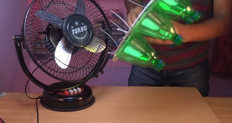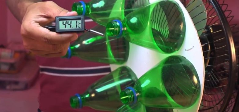 Дурь какая… а замер температуры вообще произведен некорректно — не в ПОМЕЩЕНИИ, а ВОЗЛЕ ВЕНТИЛЯТОРА! Причем возле самых лопастей (а не горлышек бутылок!), где температура всяко будет ниже, даже без этой байды, в которой только бутылки рублей на 600 потянут…