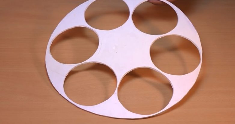 Нарисуй на получившейся основе шесть кружков поменьше — сюда будут крепиться бутылки. Следи, чтобы они были расположены симметрично.