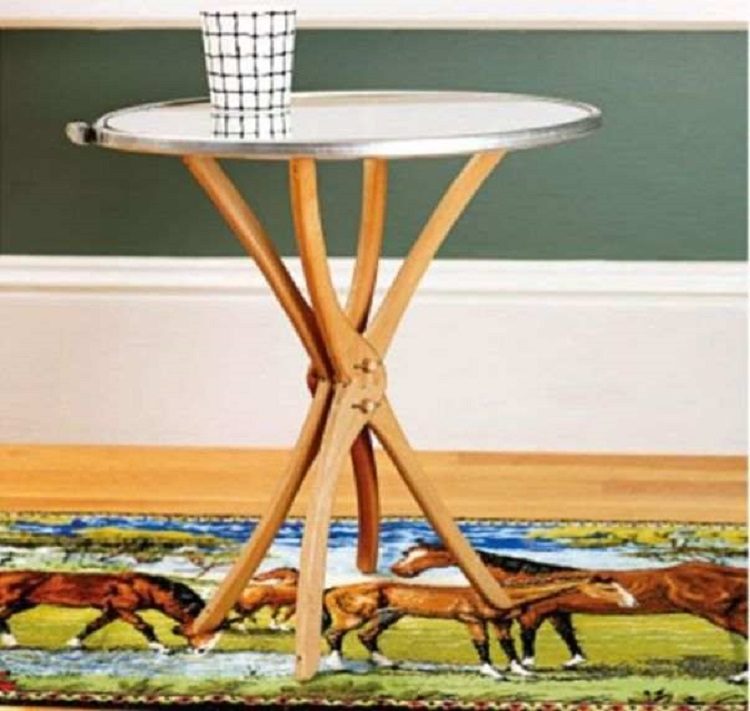 Маленький столик можно легко смастерить из четырех плечиков. Отлично дополнит интерьер.