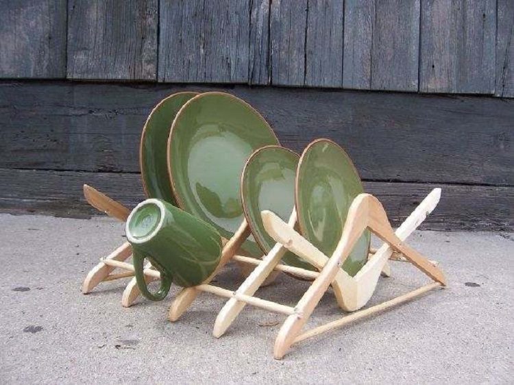 Из деревянных плечиков можно сделать шикарнейшую подставку для тарелок. Получается дешевле, чем покупать в магазине.