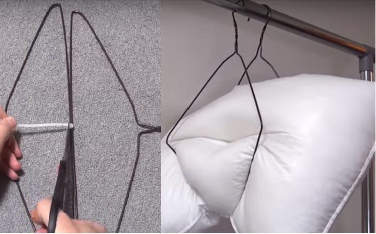 Скрепи 2 вешалки и используй их для хранения подушек.