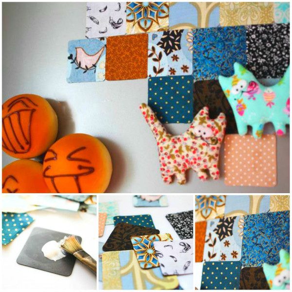 Это магнитная бумага, нарезанная на квадраты и обтянутая тканью.
