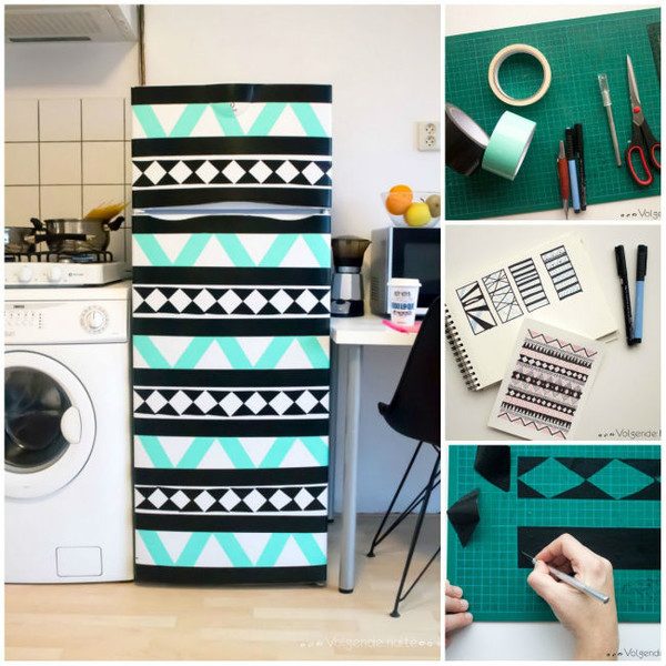 Автор этой идеи меняет дизайн холодильника каждые два года. При покупке пленки выбирайте «легко удаляемую», это облегчит вам смену орнамента.