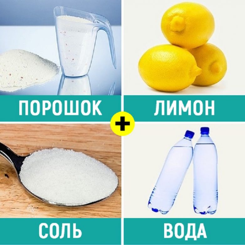 Пятна на белых вещах вывести сложно, но возможно! Тебе понадобится сок 3 лимонов, 80 г стирального порошка, 1 ст. л. соли. Все компоненты залей 2 л воды и замочи в этом растворе вещи. Через 1 час можно вынимать белье и приступать к полосканию.