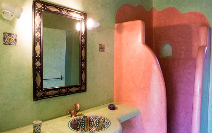 Даже в очень маленькой ванной комнате при помощи грамотного подбора и размещения керамической плитки и некоторых элементов мебели можно создать интерьер в мексиканском, марокканском или испанском стиле.
