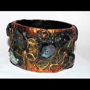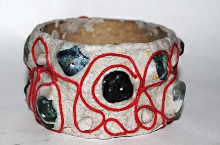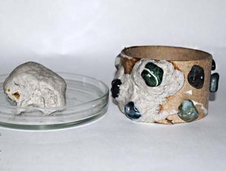 Некоторые рукодельницы совмещают технику Папье-маше с другими и в итоге получаются интересные браслеты с камнями и рельефной текстурой.