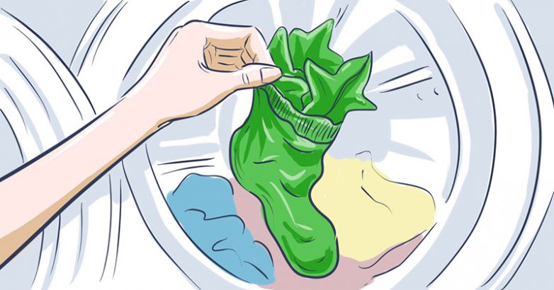 Завяжи носок или мешок и брось его в машину с бельем. После этого просто запусти стиральную машину и пусть листья плюща творят свою магию.