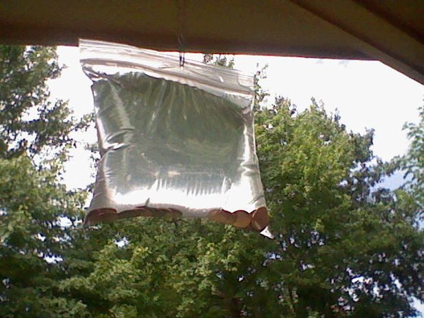 Теперь блокатор мух готов к установке. Используйте скрепку и кусок веревки, чтобы повесить пластиковый пакет перед любыми открытыми окнами или дверями. Если вы заметили, что мухи, как правило, залетают через тот или иной проем, повесьте больше одного пакета воды.