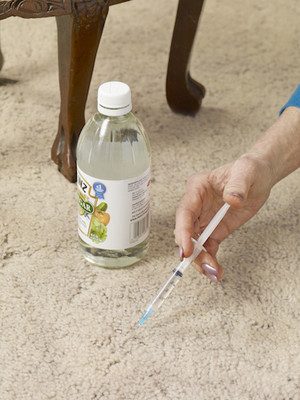 Смешайте воду и уксус в одинаковой пропорции, полейте смесью пятно, подождите 5 минут, а затем вытрите чистой тряпочкой. Коврик будет выглядеть как новенький!