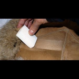 Если грязь на дубленке сухая, ее будет легко счистить при помощи обыкновенной щетки для замши. Обработай стороной с жесткой щетиной место загрязнения, потом смочи щетку в слабом мыльном растворе и пройдись ее мягкой силиконовой стороной по загрязнению еще несколько раз, чтобы убрать его окончательно.