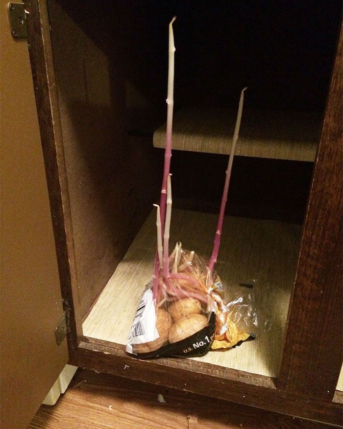 С картошкой и капустой все просто — забудьте их в овощном ящике на пару недель, и они так и прорастут. А вот клубника, которая выпустила побеги из семечек прямо на ветке, удивила, конечно.