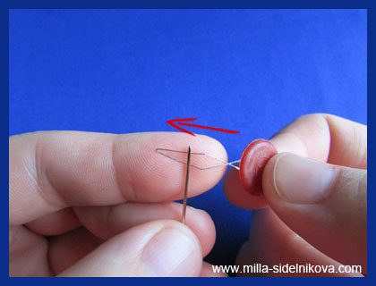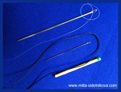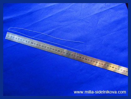 И ещё одно хотела бы заметить. Длина нитки должна быть не очень большой. Не зря в народе говорят: «Длинная нитка — ленивая девка!» Потому, что желание побыстрее сделать работу оборачивается тем, что длинная нитка постоянно запутывается. Особенно если нитка эта, сложена в два слоя. Оптимальная длина 50-60 см.