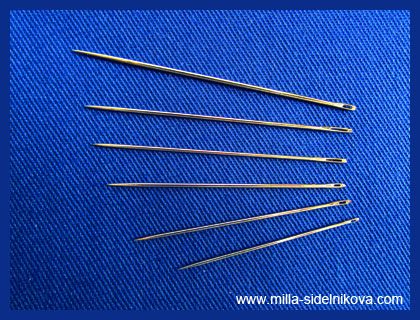 Иглы для ручного сшивания ткани разнятся по диаметру (толщина стержня), длине