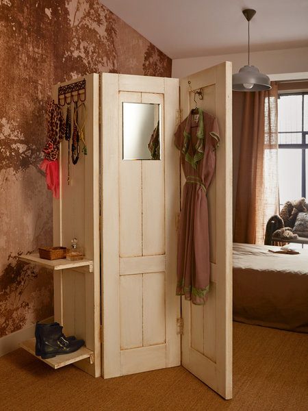 Дверь наоборот можно застарить еще больше и вставить туда зеркало, превратив в винтажную деталь интерьеров