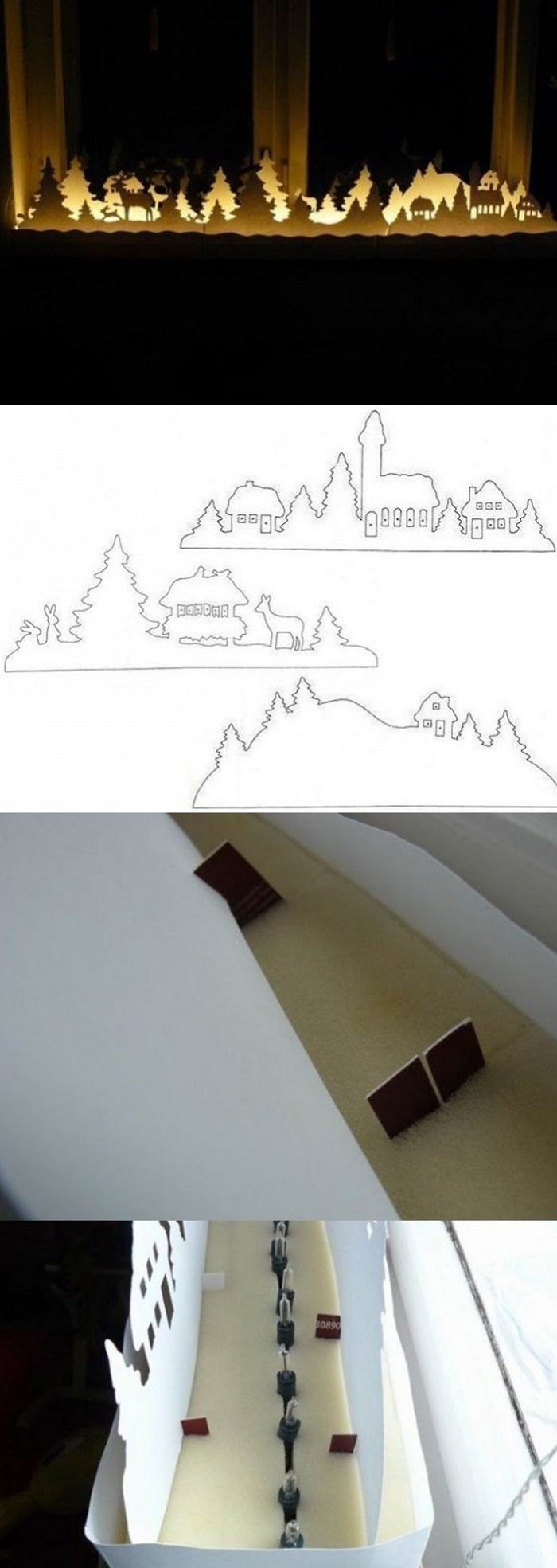 Такие украшения для окон можно делать своими руками и вовлечь в этот увлекательный процесс всю семью.Это простая, но очень красивая идея для создания сказочной атмосферы в доме.