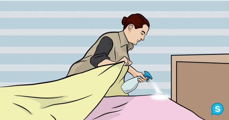 Налейте спирт в пульверизатор и распылите его по кровати и белью. Дайте высохнуть и как следует пропылесосьте: насекомых не останется!